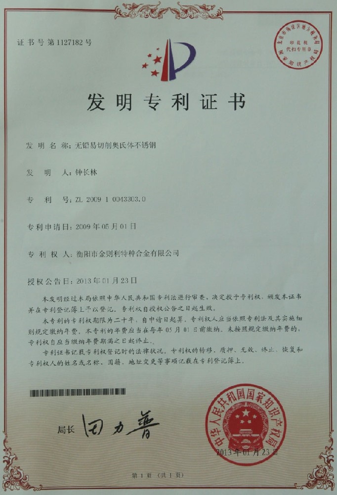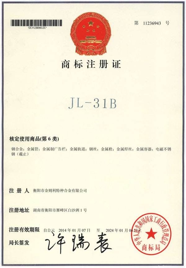 衡陽市金則利特種合金股份有限公司成立于一九九九年十二月,注冊資本人民幣兩千兩百萬元。注冊地址:衡陽市雁峰區(qū)白沙洲工業(yè)園長塘路2號。公司主營耐蝕軟磁合金,為湖南省高新技術企業(yè)。公司自成立以來,即致力于耐蝕軟磁合金的研發(fā)。 研制出的JL-31(00Cr13si2Pb)、JL-31B(00Cr13si2)、JL-31BS(00Cr13Si2S)、JL-37B(0Cr17Si2)、JL-37(0Cr17···